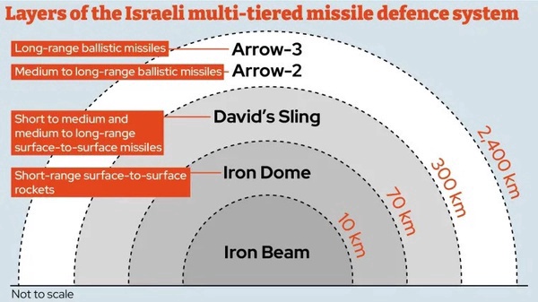 اسرائیل نے پچھلے کئی دہائیوں میں اپنے دفاعی نظاموں پر بہت زیادہ انحصار کیا ہے۔ یہ کثیر سطحی نظام، امریکیوں کی موجودگی اور سینکڑوں ملین ڈالر کی لاگت کے ساتھ، اسرائیل کو فضائی خطرات سے بچانے کے لیے نصب کیے گئے ہیں۔ اسرائیل کا دعویٰ تھا کہ اس نے مقبوضہ علاقوں کو ایک ناقابل تسخیر جگہ میں تبدیل کر دیا ہے۔ نظام کی پہلی سطح «ختص» یا « پیکان (تیر 2 اور 3)» ہے، جو 2400 کلومیٹر تک کے بیلسٹک میزائلوں کو ٹریک کرنے کے لیے ہے۔ دوسری سطح «فلاخن داوود» ہے جو زمین سے زمین تک کے درمیانے فاصلے کے میزائلوں کو تباہ کرنے کے لیے ڈیزائن کیا گیا ہے، اور تیسری سطح یعنی «آئرن ڈوم» کو قریبی فاصلے پر داغے جانے والے راکٹوں کو ٹریک کرنے کے لیے نصب کیا گیا ہے۔ ان سطحوں کے ساتھ، امریکی پیٹریاٹ سسٹم، امریکی بحری جہاز اور اسرائیلی فضائیہ بھی دفاعی کردار ادا کرتے ہیں۔ تاہم، «وعدہ صادق 2» آپریشن میں، 200 میزائلوں میں سے تقریباً 90 فیصد کامیابی سے اپنے اہداف پر پہنچے۔