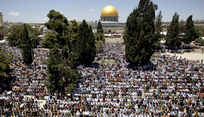 بیت المقدس میں اردن کے زیر انتظام اوقاف و مذہبی امور کے مطابق جمعہ کی شام اسرائیلی پابندیوں کو روندتے ہوئے ایک لاکھ سے زیادہ فلسطینیوں نے مسجد اقصیٰ میں عشا اور تراویح کی نمازیں ادا کیں۔ اسرائیلی فوج اور پولیس کی طرف سے اس موقعے پر جگہ جگہ رکاوٹیں کھڑی کی گئی تھیں اور فلسطینیوں کو قبلہ اول تک رسائی سے روکا جا رہا تھا۔