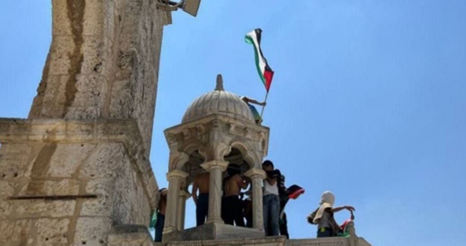 فلسطینی شہریوں کی طرف سے مسجد اقصیٰ پر قومی پرچم لہرانے کی تصاویر سوشل میڈیا پر شائع کی گئیں جن میں نوجوانوں اور بچوں کو مسجد اقصیٰ کے ایک گنبد پر فلسطینی پرچم لہراتے دکھایا گیا تھا۔