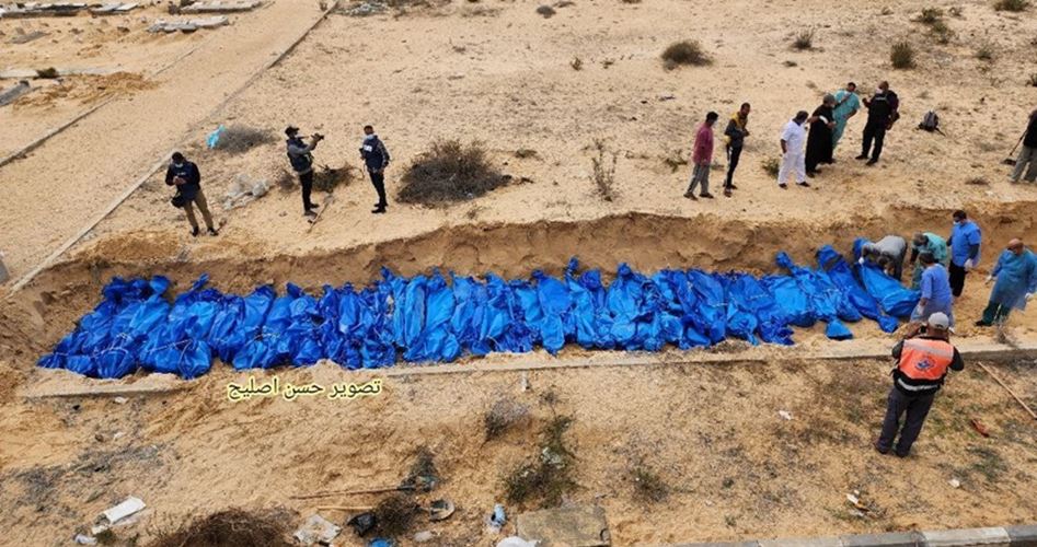 غزہ میں وزارت صحت نے اعلان کیا کہ 111 شہداء کے جسد خاکی جو غزہ اور شمال کے رہائشی ہیں کو خان یونس کے مغرب میں ایک اجتماعی قبر میں دفن کیا گیا ہے۔