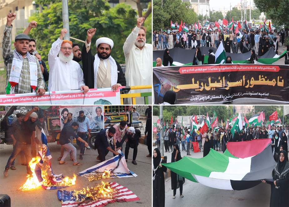 رہنماؤں کا کہنا تھا کہ جس طرح کشمیر پاکستان کی شہہ رگ حیات ہے، اسی طرح فلسطین امت مسلمہ کی شہہ رگ حیات ہے، پاکستانی شہریت رکھنے والے افراد کے صہیونی ریاست کے دورے حیران کن اور باعثِ تشویش ہیں اور مملکت پاکستان کے لئے نقصان دہ ہیں۔ رہنماؤں نے پاکستان میں کشمیر و فلسطین کے خلاف آواز بلند کرنے والوں کے خلاف کارروائی کا مطالبہ کیا اور کہا کہ اسرائیل کے تعلقات کی بحالی کی بات کرنیوالا قومی مجرم ہے، پاکستان کی پارلیمنٹ میں قانون پاس کیا جائے کہ جو بھی اسرائیل سے تعلقات بحالی کی بات کرے، وہ قومی مجرم شمار کیا جائے گا۔ ریلی کے اختتام پر شرکاء ریلی نے امریکا، اسرائیل، ہندوستان اور برطانیہ کے پرچم نذر آتش کئے۔
