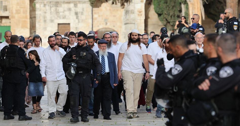 یروشلم کے مشرق میں 820 آبادکاروں نے مسجد اقصیٰ کے صحن ہے میں گھس کر مقدس مقام کی بے حرمتی کی۔